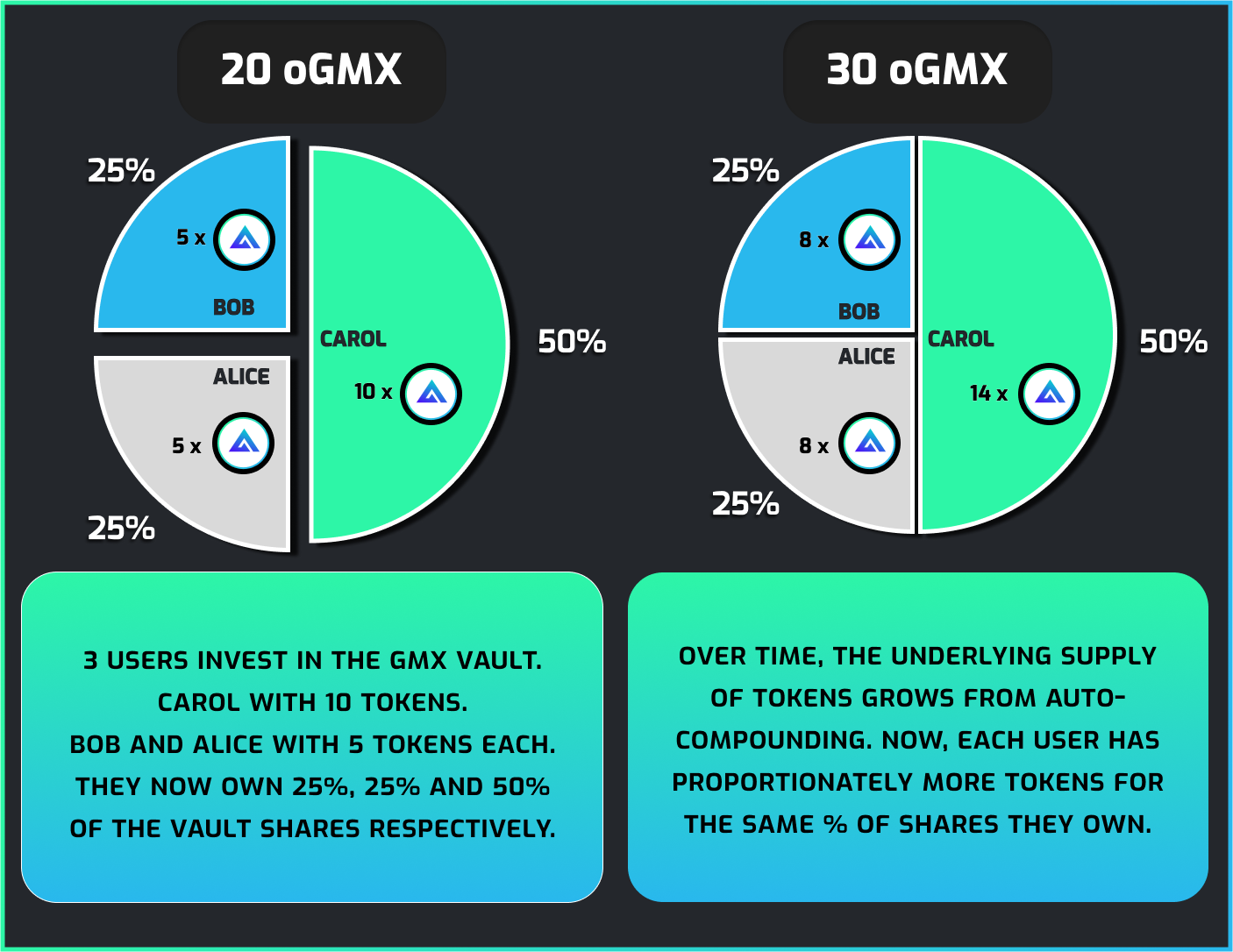 The user shall first deposit the appropriate underlying Token for the vault such as GMX or GLP. They will then receive an Origami Vault Share Token, or “ovToken”, which represents their share of the then-current outstanding [oToken](https://docs.origami.finance/the-first-fold-v1/origami-tokens-otokens) reserve in the vault.