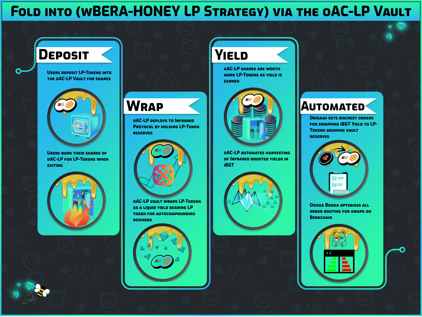 <figure><img src="https://1838495634-files.gitbook.io/~/files/v0/b/gitbook-x-prod.appspot.com/o/spaces%2FuQqfnSZUSHvj0FdEt8I8%2Fuploads%2FJZ2k8AndZfdbD6TTZk31%2FoAC%20wBERA-HONEY%20Token%20Flow.png?alt=media&#x26;token=f71db181-4830-4e80-aac9-6bbd03eb0b7a" alt=""><figcaption><p>Fig 30. Displaying the user flow for auto-compounding wBERA-HONEY LP tokens with the oAC wBERA-HONEY vault.</p></figcaption></figure>
