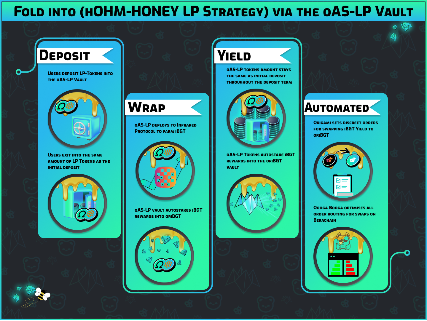 Origami sets discreet orders for swapping iBGT yield farmed to hOHM-HONEY LP growing the vault reserves