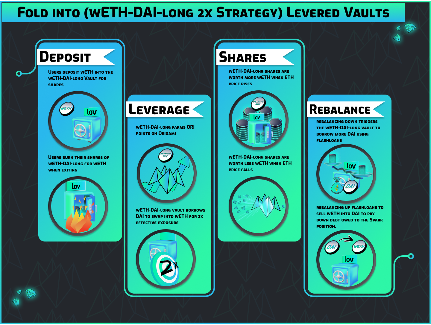 wETH-DAI-long 2x vault borrows wrapped DAI to swap into wETH for 2x Effective Exposure