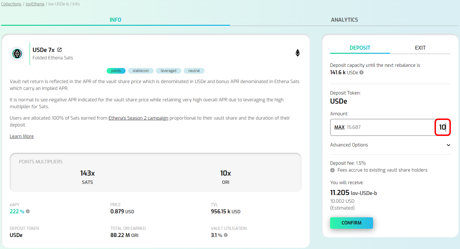 USDe is the only whitelisted assets for deposits into the USDe 7x vault